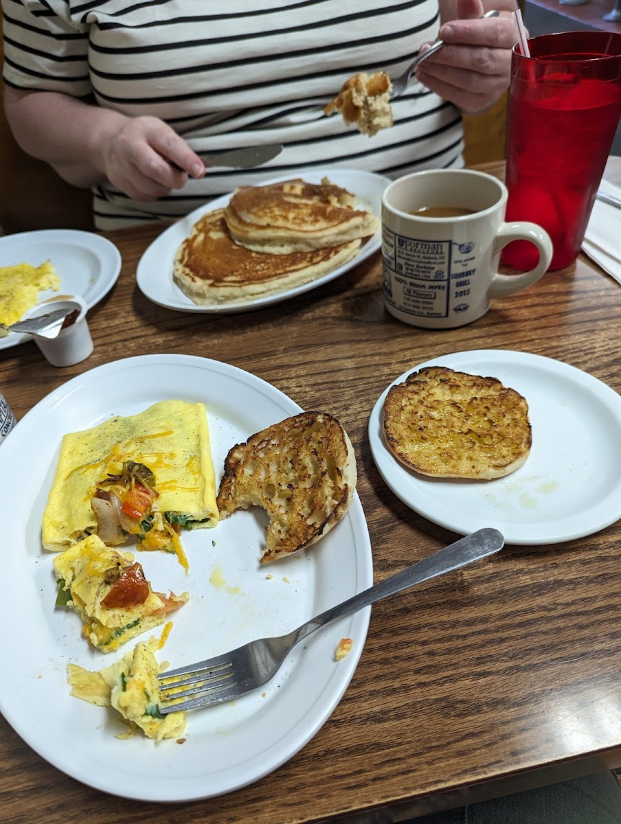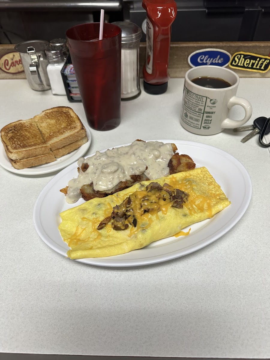 We spend the weekend at a local campground each year for a guys weekend. Saturday morning breakfast is at the Sunbury Grill. There is normally a wait but it is well worth it. The waitress has just a little sass but we love it. She is just giving back what she is getting from a group of hungover guys up for a weekend of fun. The coffee is hot and fresh, the food is always good, and the pricing isn't bad either. Lots of value for what they charge. Pay attention to the bread list the first time, she wouldn't tell us twice (part of the fun) and there must have been 10+ options.