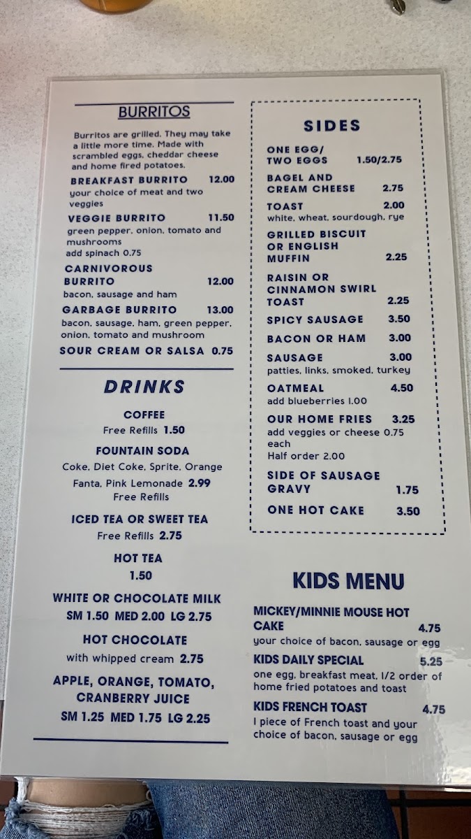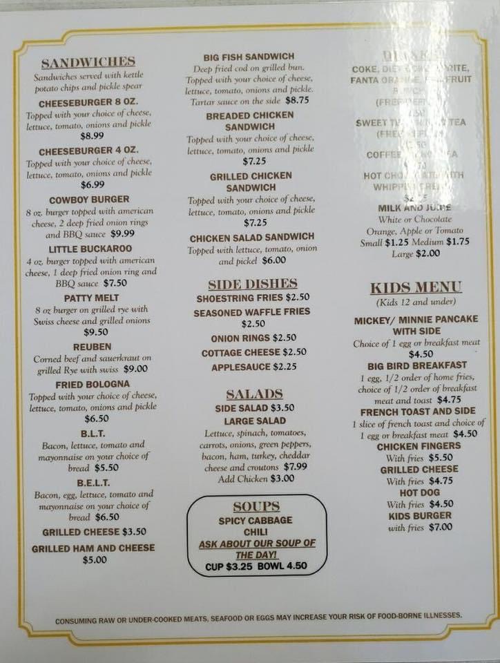 Beverage choices remain simple with soda and iced tea, emphasizing an unpretentious approach that fits the restaurant’s welcoming and down-to-earth setting. Whether stopping by for a quick bite, a leisurely weekend breakfast, or catching up with friends, the menu supports a relaxed experience marked by thoughtfully prepared American favorites served in a warm, approachable environment.